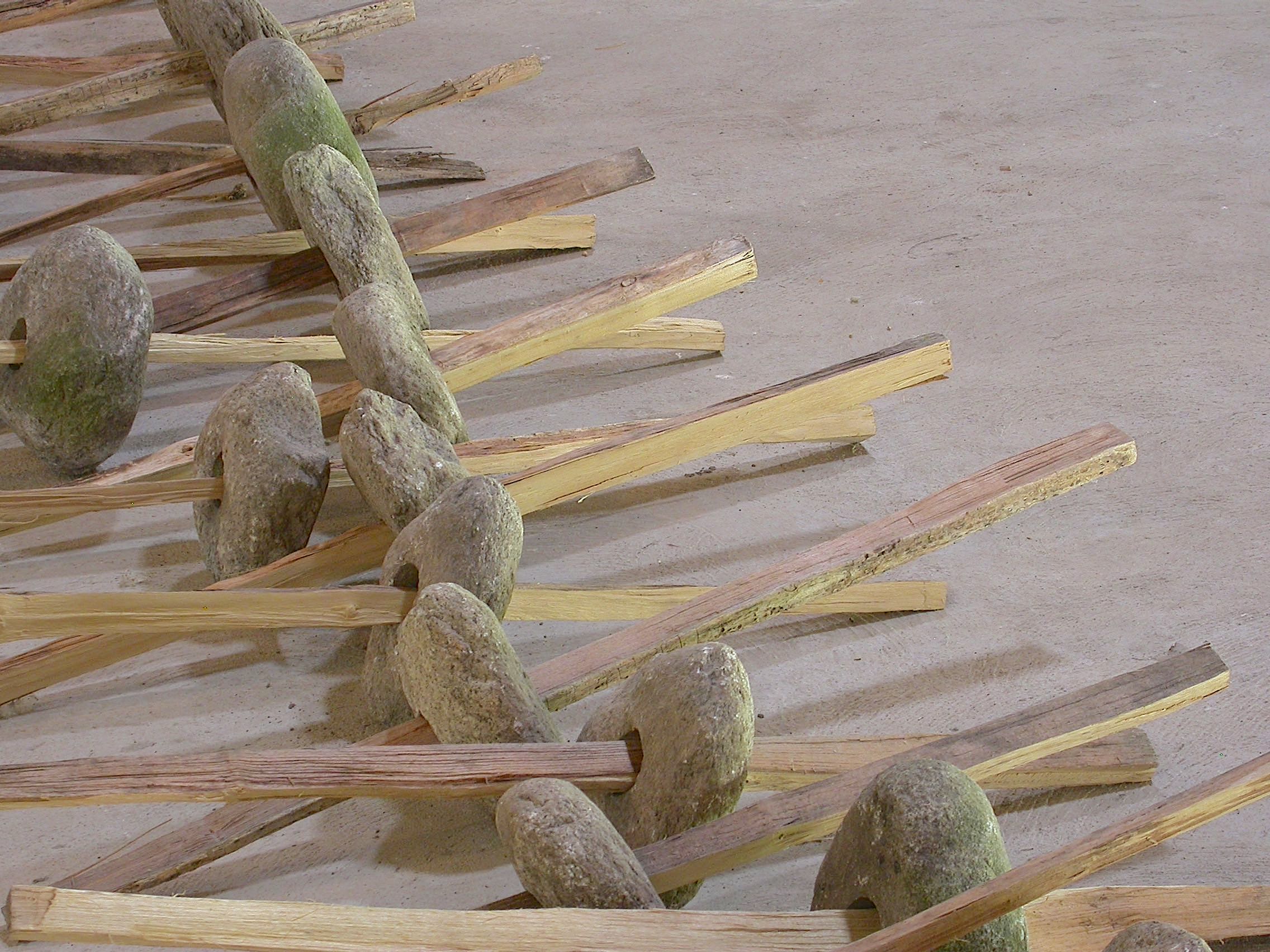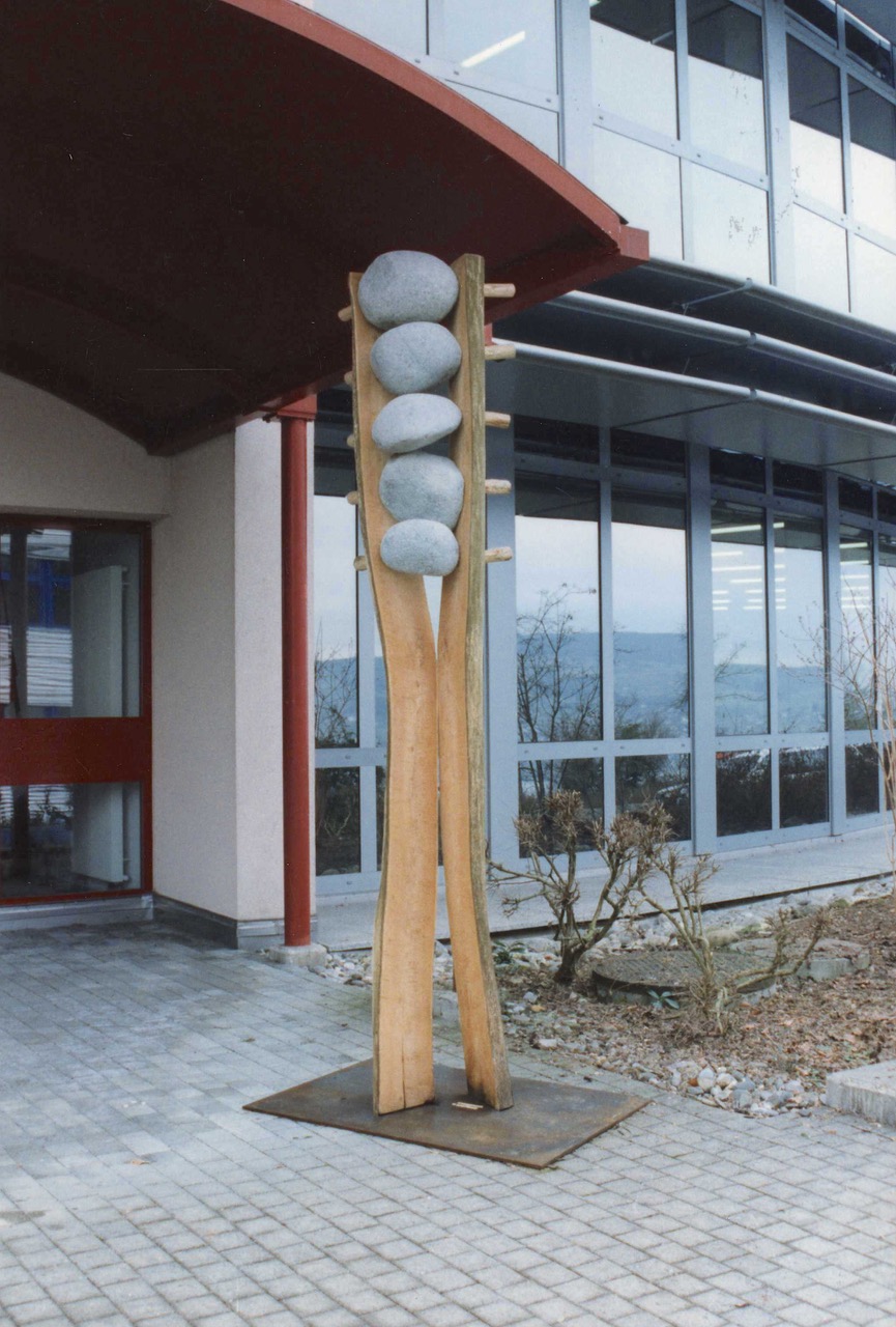 In der Folge machte ich Skulpturen aus Geröll aus den Alpen und kombinierte es teilweise mit gespaltenem oder gesägtem, aber sonst naturbelassenem Holz. Dass manche Materialien in meinem Werk naturbelassen aussehen, ist zuweilen das Resultat geduldiger Arbeit.