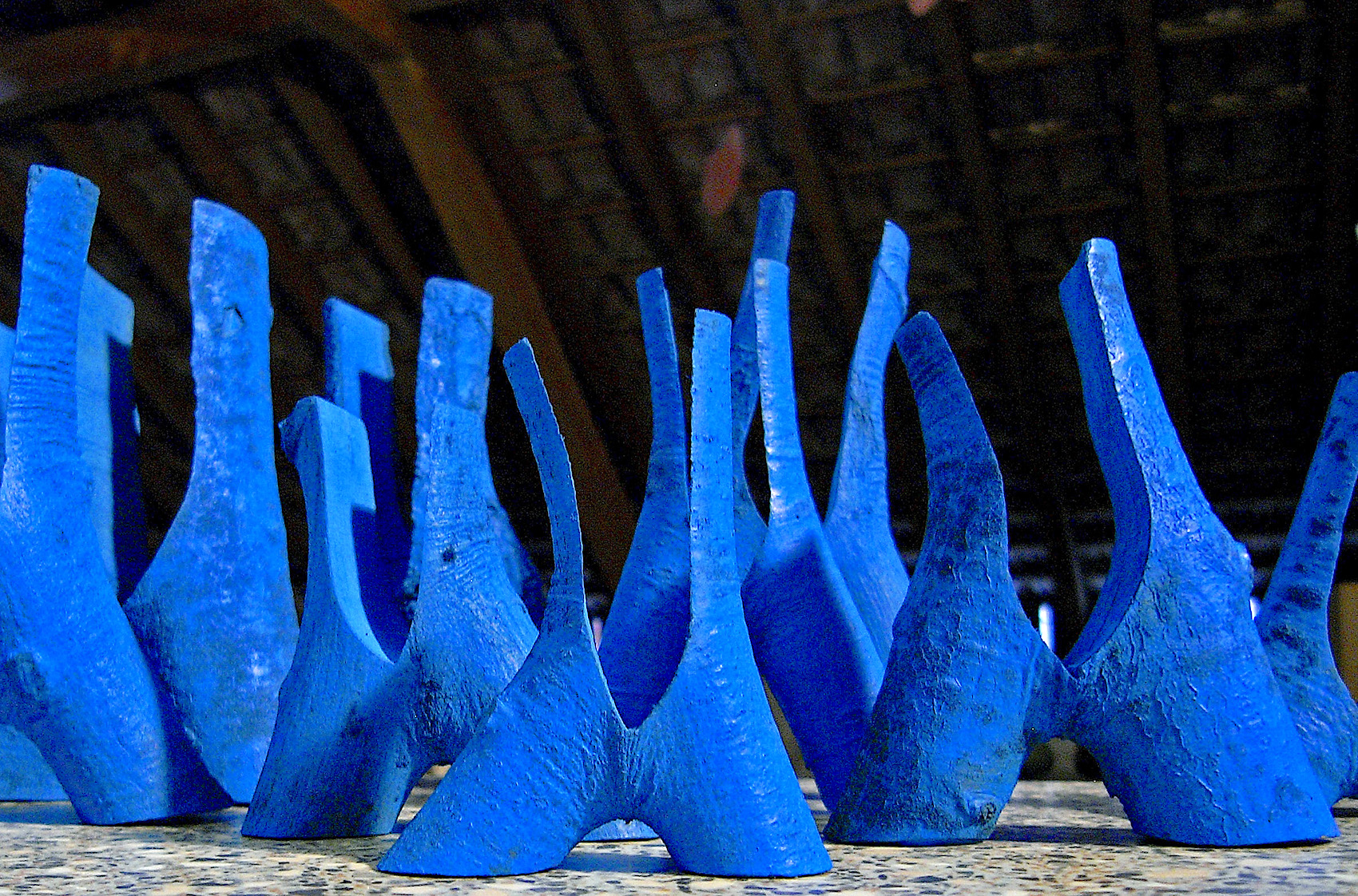 Das Werk umfasst mehr als 100 signierte Skulpturen aus gewachsenem Holz, die entweder hellblau oder weiss lasiert sind. Sie sind eingelagert in einem stossfesten Lebensmittelcontainer aus blauem Plastik, gepolstert mit Zeitungspapier.